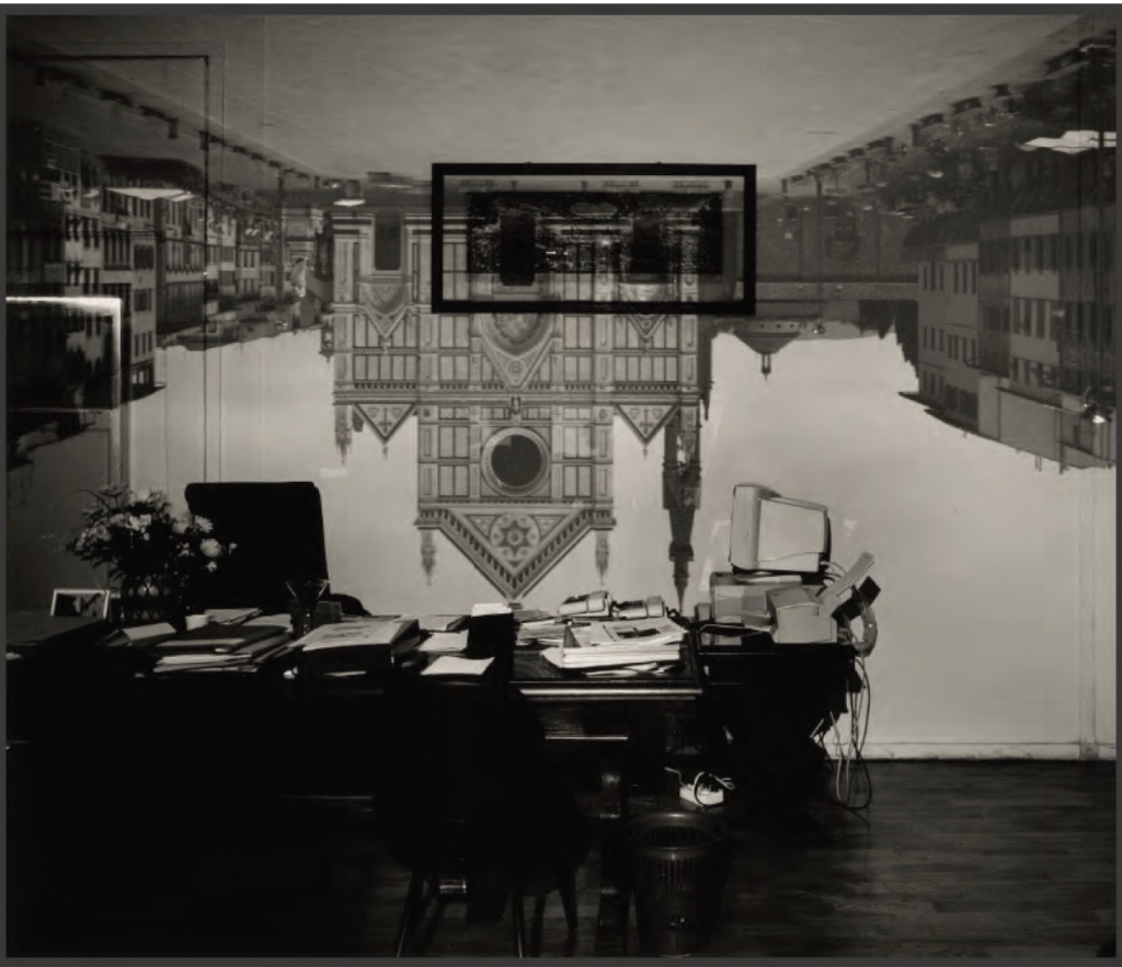 Abelardo Morell, Camera Obscura Image of Santa Croce in Office, Florence, Italy, 2000. (Source: https://www.getty.edu/art/collection/object/109HNM)
