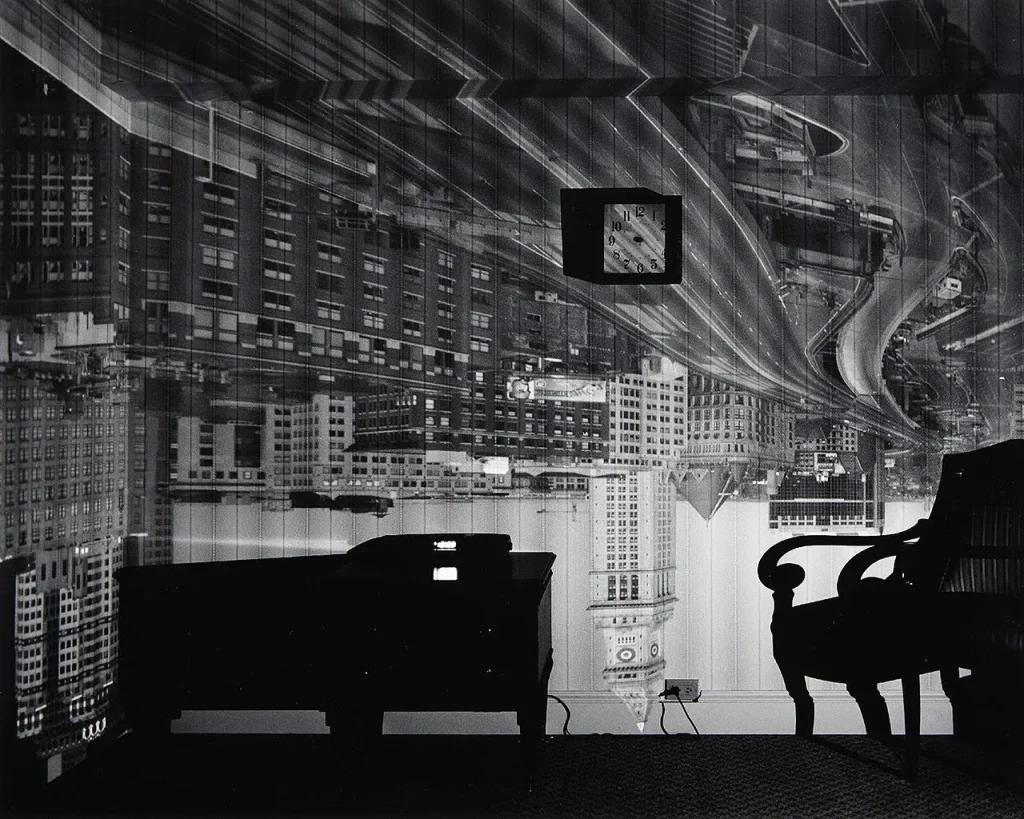 Vera Lutter: Using the architecture of the camera obscura as her photographic mechanism, Lutter becomes the transcriber of outer architectures, facing buildings and industrial sites. Interested in places which reference particular historical moments or which have adopted an iconic stature, she transforms rooms which look upon her pending subjects into cameras, often inhabiting them during the length of each exposure. Her images often reference movement over the hours or sometimes weeks of each exposure’s duration; in so doing she speaks to the transitory nature of the built environment itself. The photographs display the microcosms of sites that are built and become altered over a course of time.