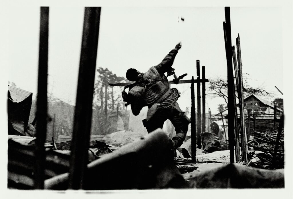 This famous formulation of the essence of photography can be found in the introduction to Cartier-Bresson’s 1947 book ‘The Decisive Moment’. He began photographing seriously in the 1930s, influenced by the Surrealists and their understanding of the camera’s ability to create a new reality. The book is divided into two chronological and geographical sections: the first spans the years 1932 to 1947 and is made up of photographs taken in the west; the second spans 1947 to 1952 and was shot mostly in the east. Cartier-Bresson was obsessed with form and composition, with the aesthetics of photography. His images are momentary glimpses of reality but organised into a geometric pattern. This desire to organise and control has drawn admiration and
