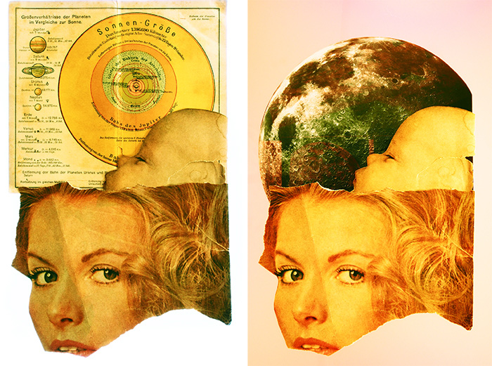 When I am not using my camera, I will be cutting paper. My collage work offers me the opportunity of complete liberties. These works happen spontaneously in different manners. To honor these reflections and thoughts, I associate no defined subject matter and it is an ongoing singular process with an open ended body of work. It is more like a collage diary, I like to call “Drôle de ménagerie”. It is where science meets religion, where animals meld into humans and are put in situations that humans put themselves and vice versa. It is where news meets fiction and the absurd collides with reality. It is also where I protest. All of the above mentioned becomes a visual cacophony, which resembles how it sometimes feels to live in the 21st century.