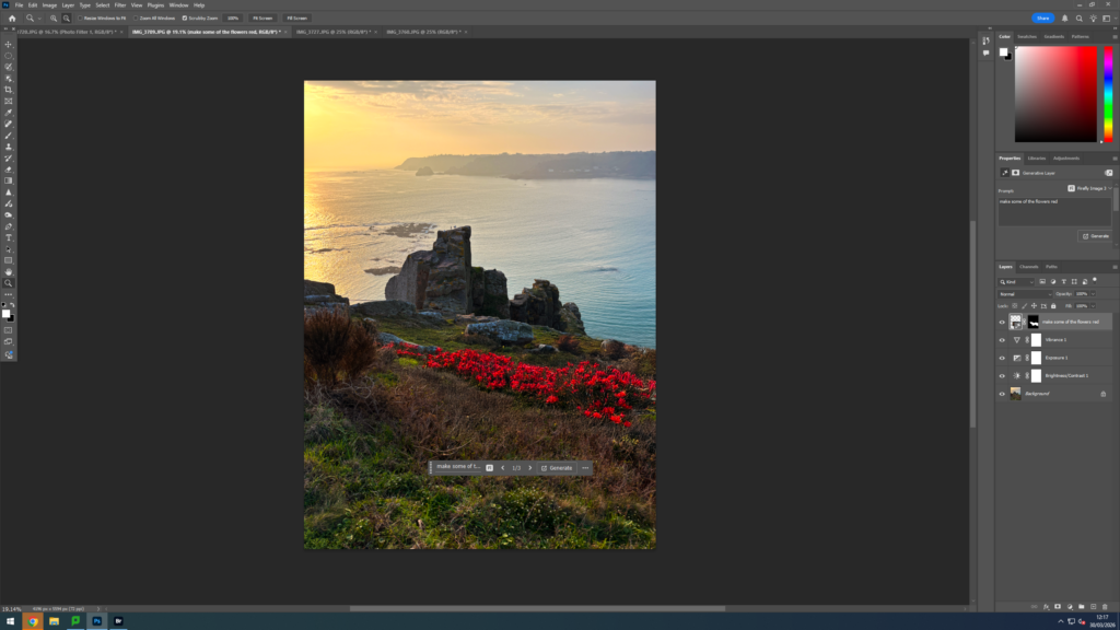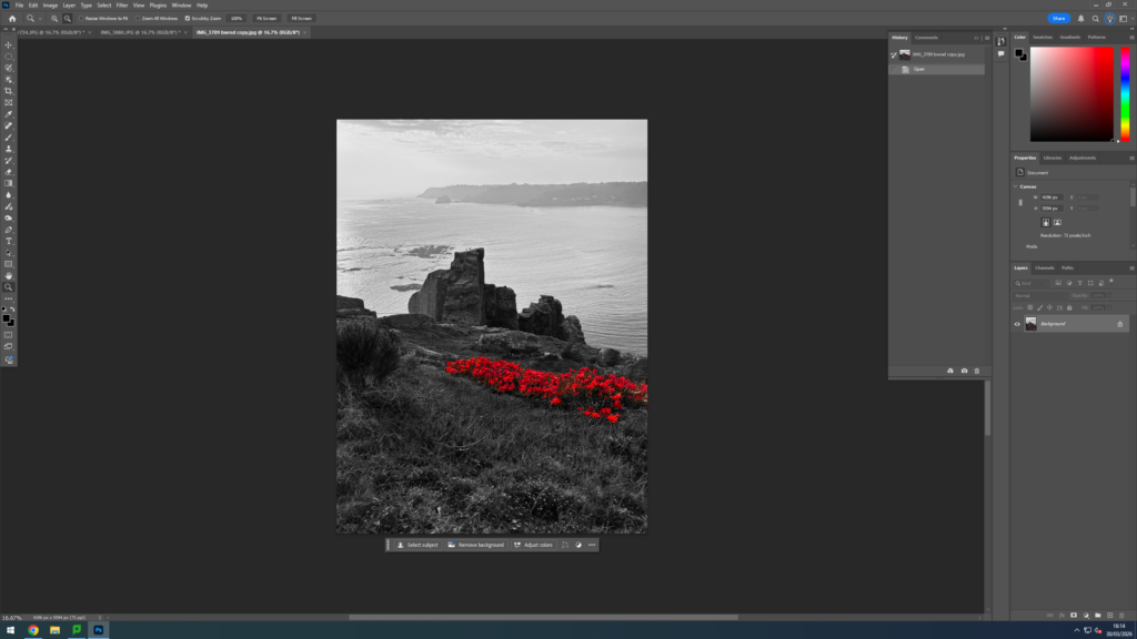 I changed the flowers to be red to continue with the theme of red throughout my work however I then changed the original image to black and white and created a colour pop image to accentuate the red.