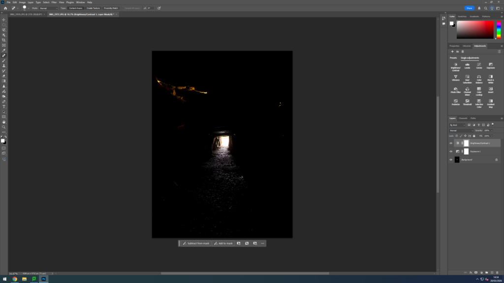 To have give the image a more authentic feel I used the “Spot Healing Brush Tool” to erase the reflection of the extra lights on the walls of the cave for safety for visitors which obviously would not have been there in the neolithic period.